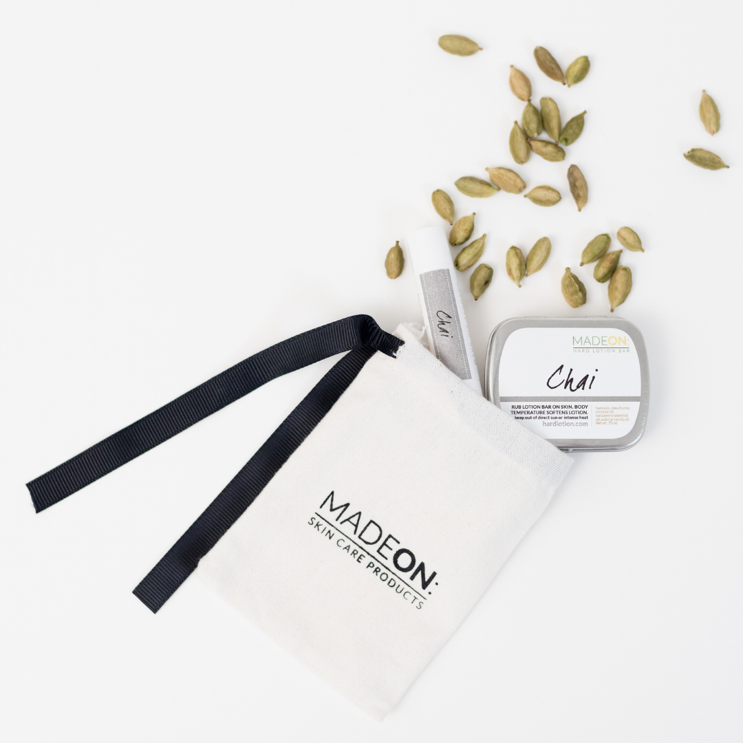 In February 2022, we introduced a Chai Lotion Bar and Chai Lip Balm, made with the comforting essential oil of cardamom and vanilla oil.